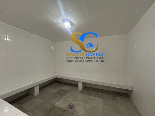 Condomínio tem salão de festas e jogos, sauna, piscina e portaria 24h.