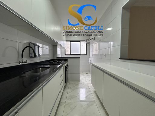Imóvel com 80m², distribuídos em 2 quartos, sendo 1 suíte, sala com 2 ambientes, cozinha, lavanderia, sacada envidraçada, 1 vaga de garagem, armário individual. Planejados na cozinha com "cooktop" e forno elétrico;
